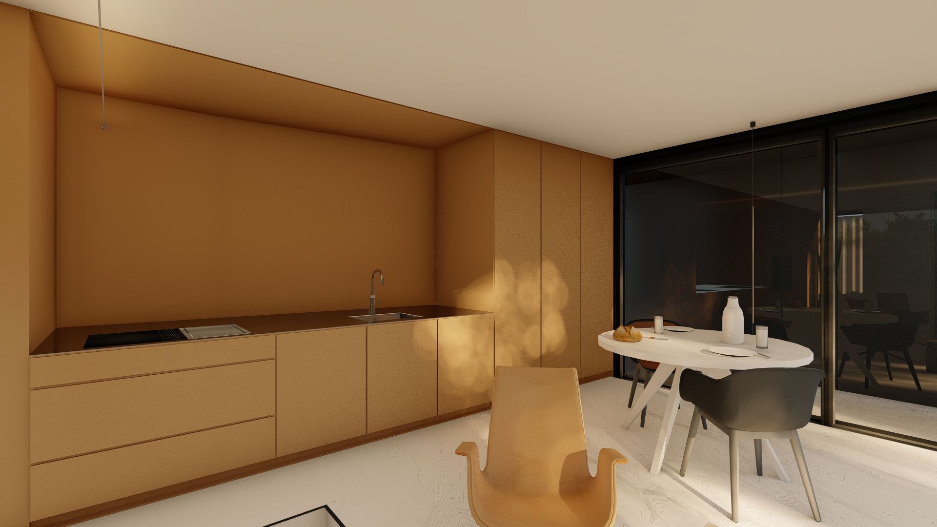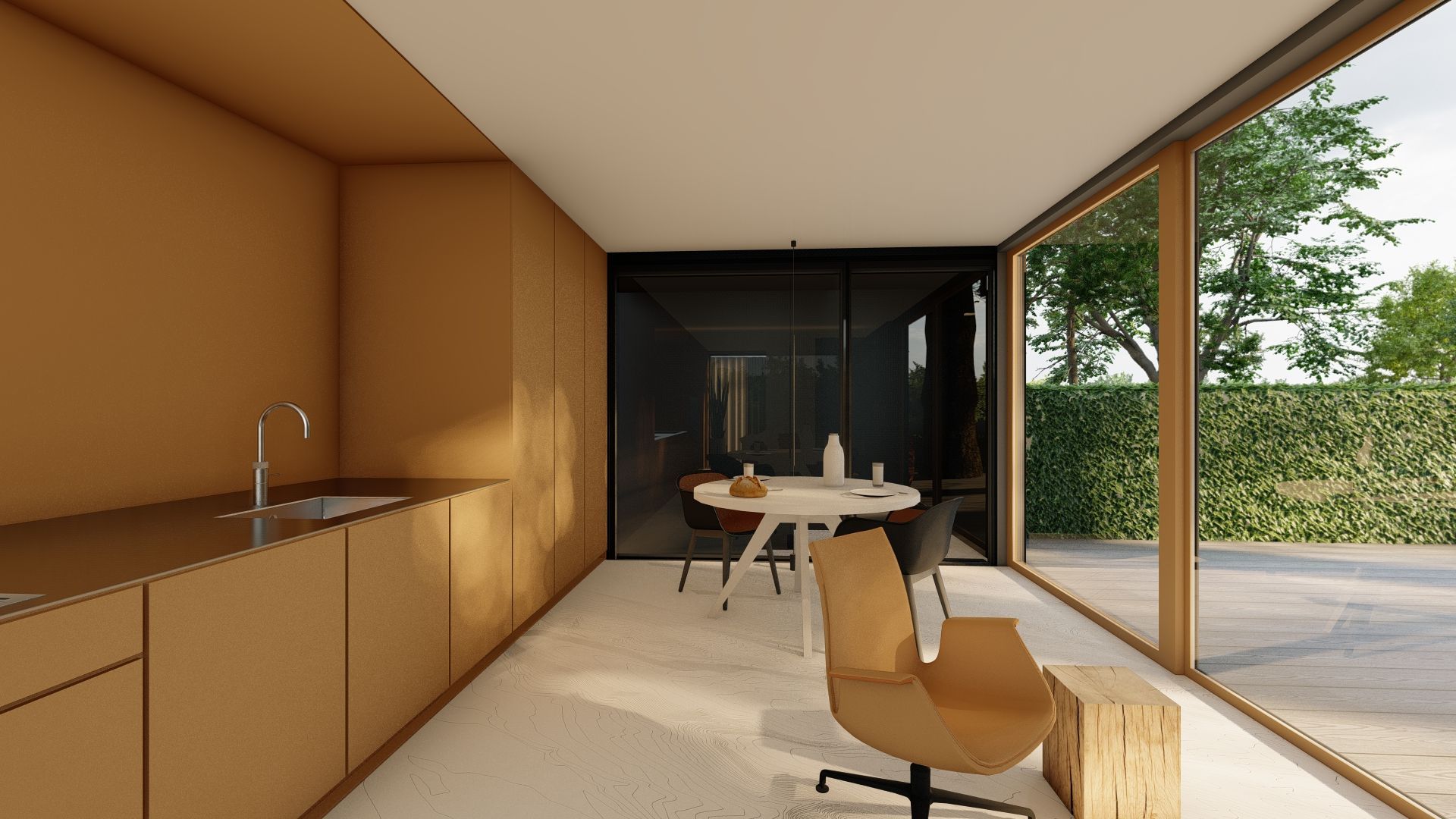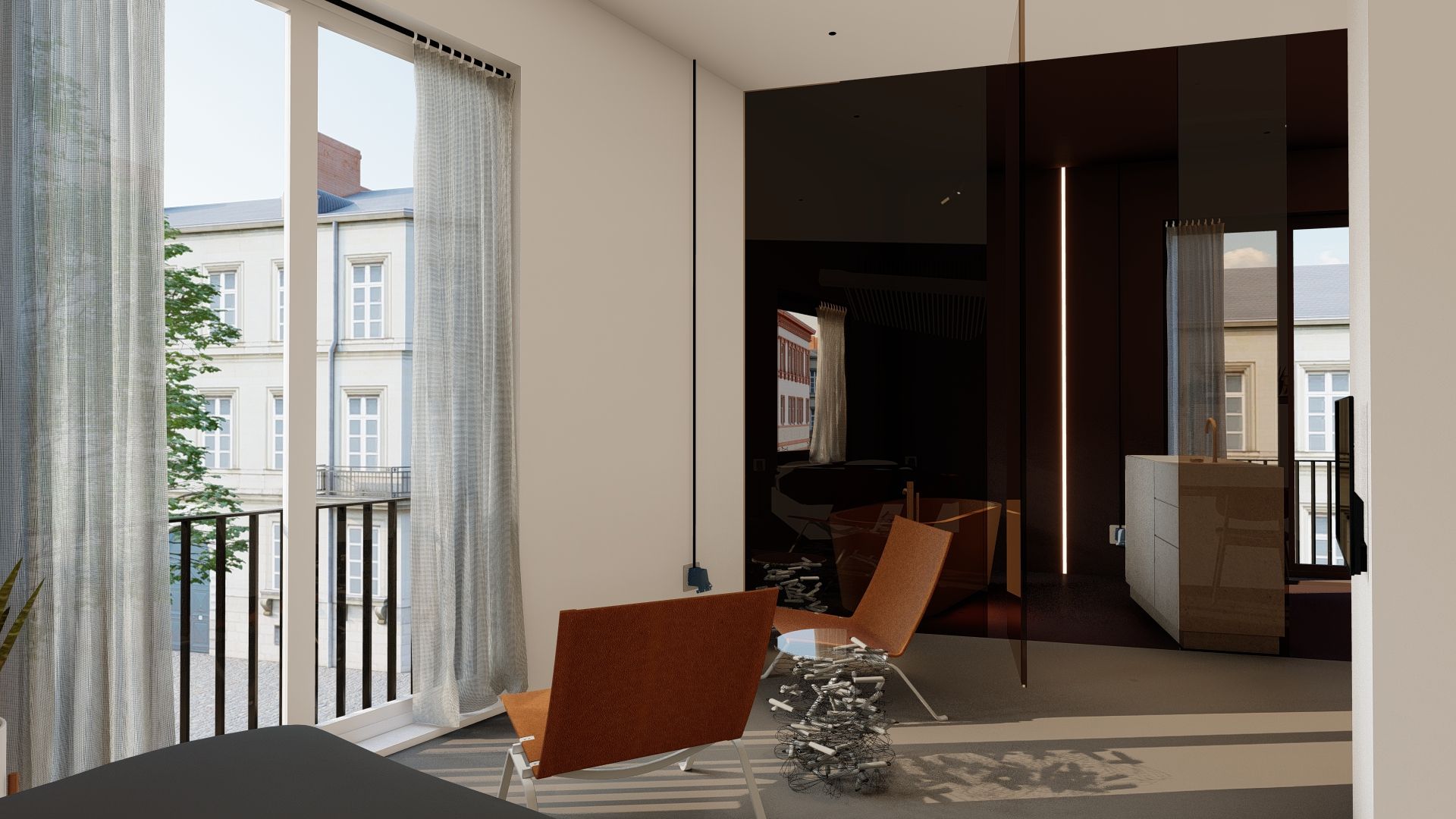 Voor het ontwerpen van een interieur ben ik consequent op zoek naar spanning en contrast - contrasten in hoogte-breedte, donker-licht maar ook in materiaalgebruik en kleur.