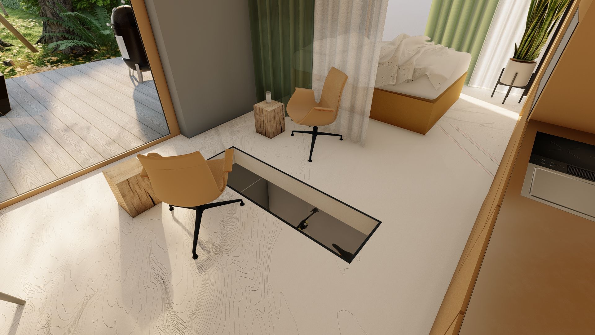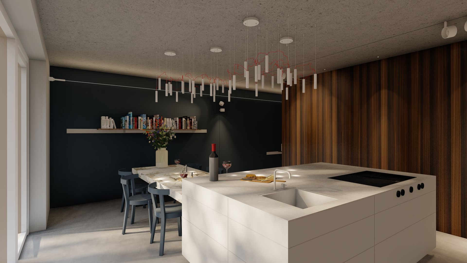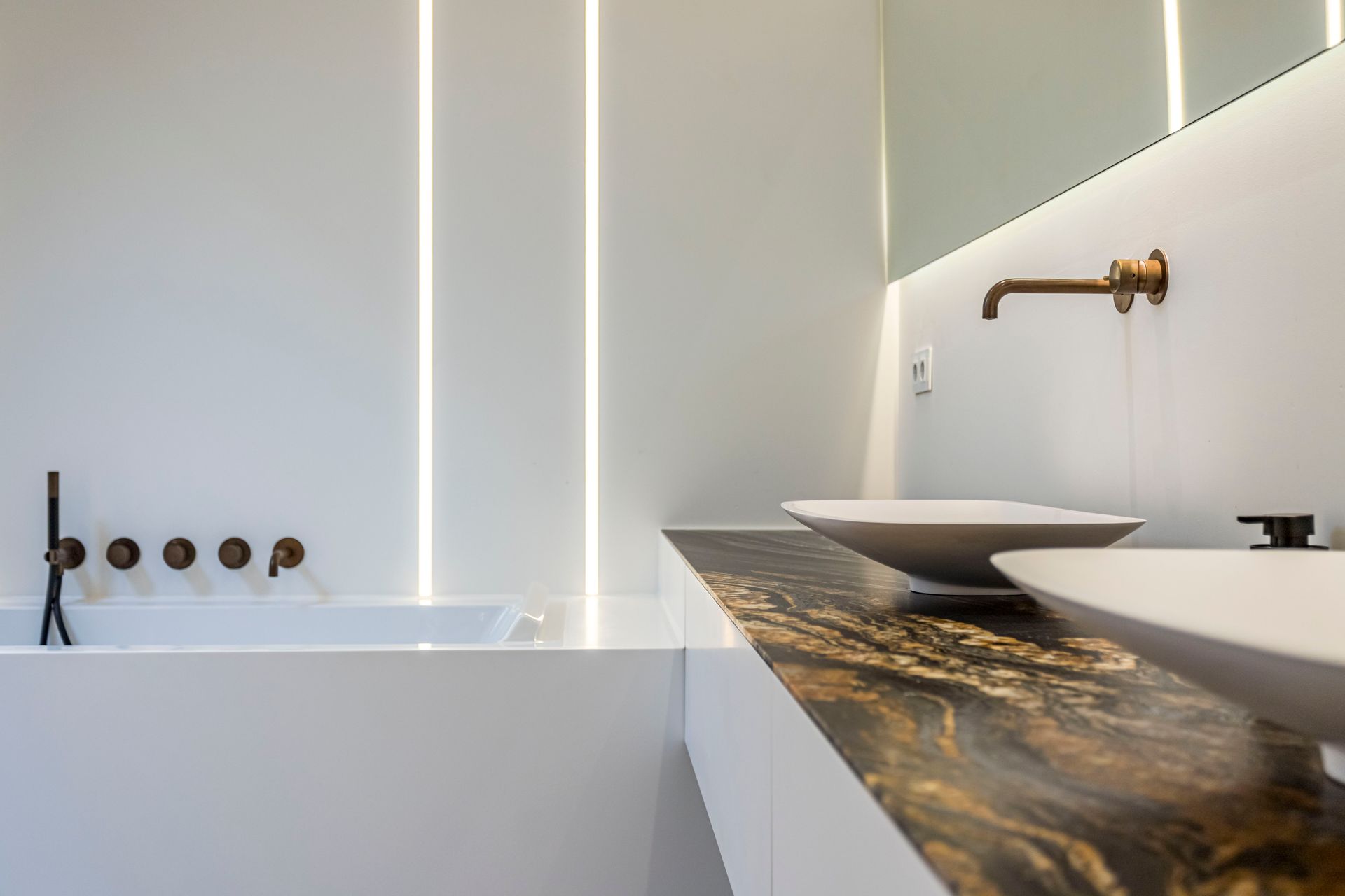Voor het ontwerpen van een interieur ben ik consequent op zoek naar spanning en contrast - contrasten in hoogte-breedte, donker-licht maar ook in materiaalgebruik en kleur.